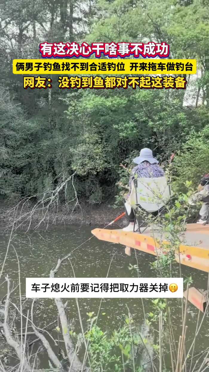 - 有这决心干啥事不成功!俩男子钓鱼找不到合适的钓位,开来拖车当钓台!网友:没钓到鱼都对不起这装备