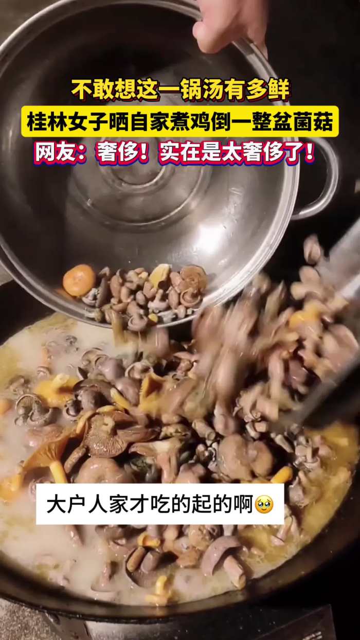不敢想这一锅汤有多鲜!桂林女子晒自家煮鸡倒一整盆菌菇!网友:奢侈!实在是太奢侈了!