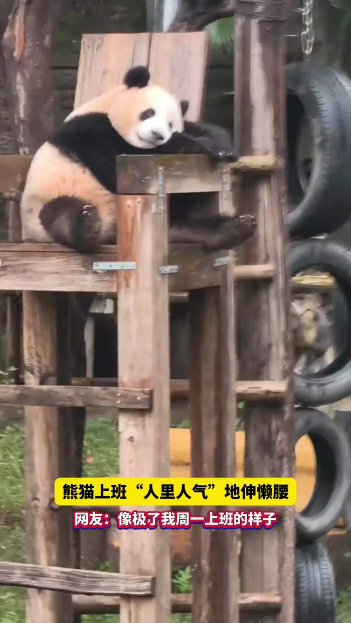 熊猫上班“人里人气”地伸懒腰,网友:像极了我周一上班的样子