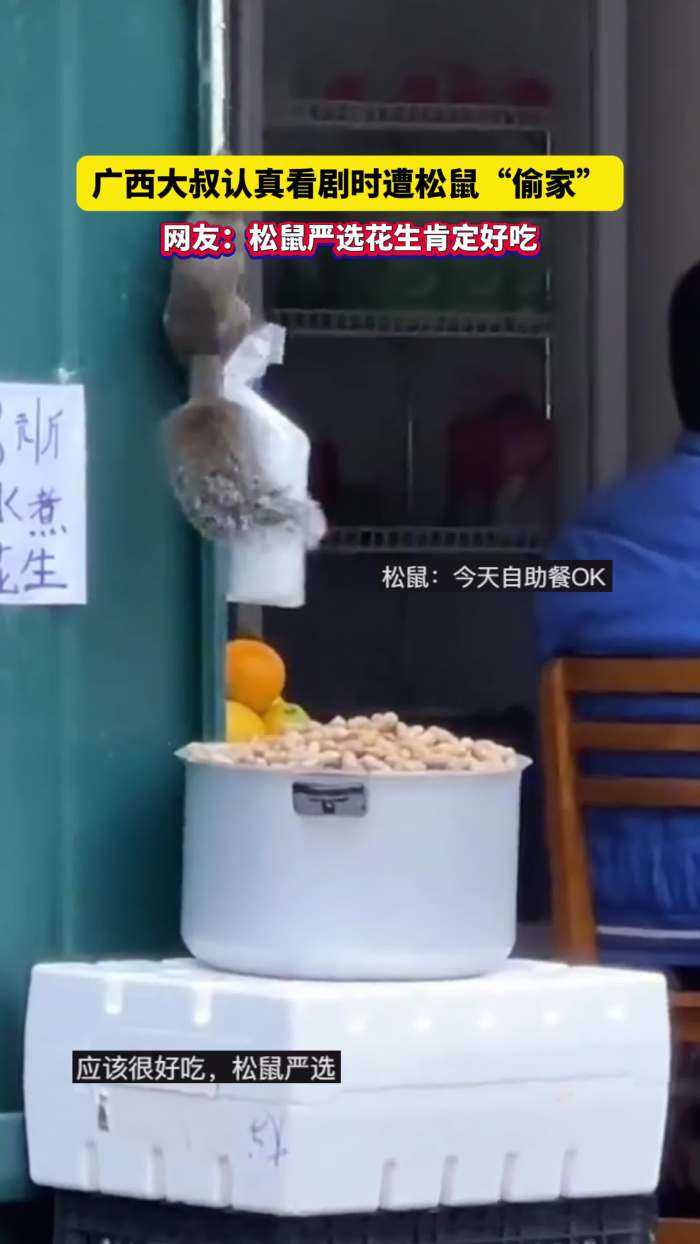 广西大叔认真看剧时遭松鼠“偷家”,网友:松鼠严选花生肯定好吃
