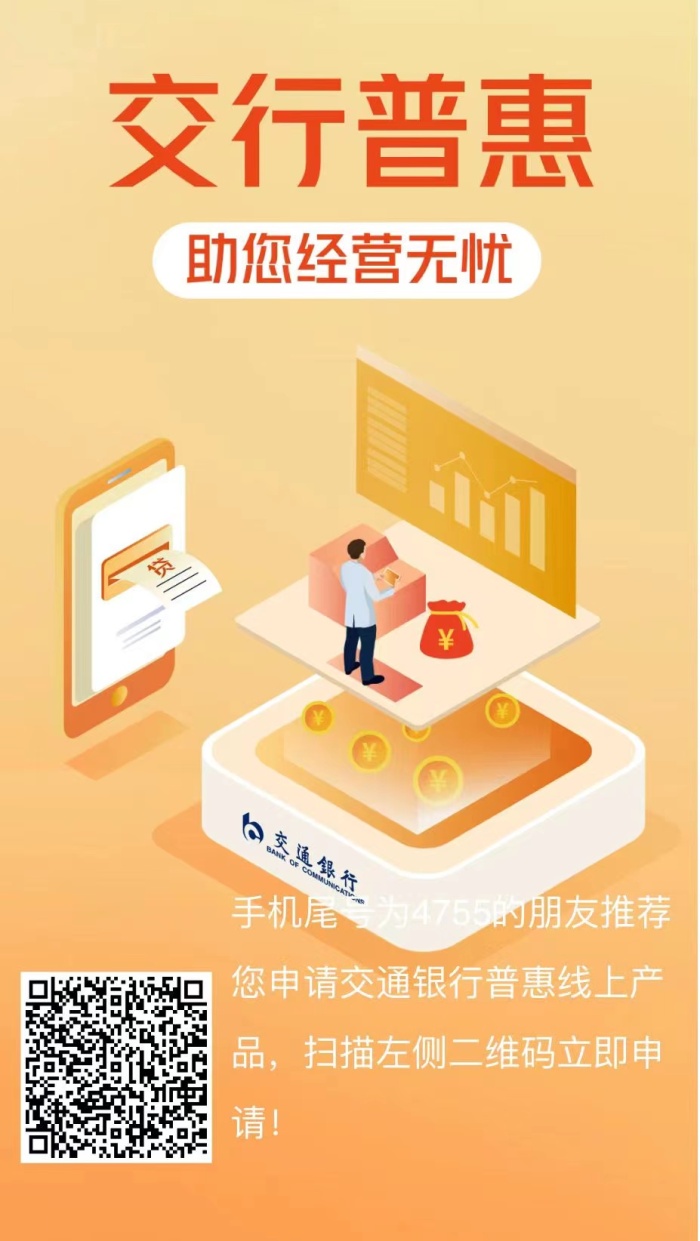交行普惠,助您经营无忧,可立即申请