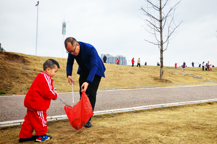 活动开始后,甘棠村驻村第一书记和老师、家长们带领小朋友们分成若干小组,沿着甘棠江岸边有序行动。小朋友们瞪大眼睛,仔细搜寻着每一处角落,不放过任何一个烟头、一片纸屑、一个塑料瓶。看到垃圾,他们便小心翼翼地用垃圾夹夹起,放进垃圾袋中,那认真的模样令人忍俊不禁。