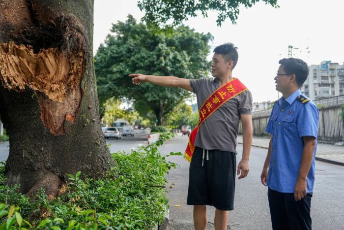 据伍先生回忆,8月17日清晨,他途经秀峰区环城西二路西门菜市附近铁路路段时,发现路边一棵市政绿化树断裂,倒在铁路栅栏上。“第一反应就是打‘96116’!”平时,伍先生经常通过街道告示栏和铁路沿线宣传了解铁路安全知识。