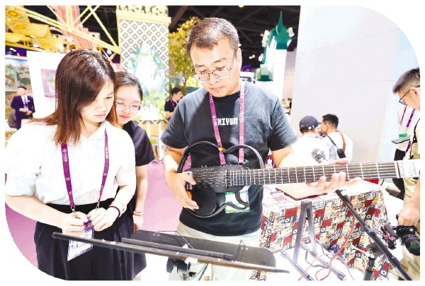 莫比乌斯环形屏幕动态铺展桂林山水画卷与十大自然人文标识,VR设备重现鸬鹚捕鱼的千年智慧,数字设备可“闻”到米粉香,机器人还与非遗传承人同台打制恭城油茶,AI吉他奏响悠扬山歌……展区内,“黑科技”带来的沉浸式体验让人流连忘返,科技感与山水意蕴在此交融。裸眼3D屏幕上,千年灵渠与现代平陆运河“隔空交汇”,生动勾勒出广西“通江达海、走向世界”的宏阔图景。