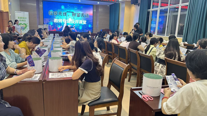在花艺体验的间隙,反诈课堂悄然开启。银行工作人员借助精心制作的PPT演示和生动鲜活的案例视频,为教师们详细剖析了电信诈骗、网络诈骗等常见诈骗手段。从冒充亲友实施诈骗的温情陷阱,到虚假中奖诈骗的诱人骗局,再到网络兼职诈骗的层层套路,工作人员结合真实发生的案例,深入浅出地讲解了诈骗分子的作案手法和心理。教师们听得全神贯注,不时露出恍然大悟的神情,对各类诈骗形式有了更为直观和深刻的认识。