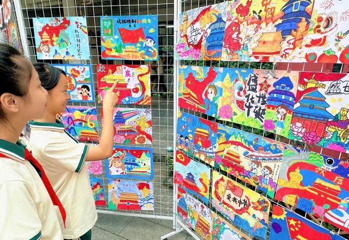 校园里,孩子们用五彩画笔勾勒祖国的锦绣山河,描绘革命先辈的英勇身姿,展现新时代的美好生活。这些作品不仅在学校内部展示,更被精心布置成展板,吸引了众多学生和家长驻足欣赏。