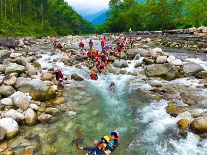 游客在猫儿山景区体验窝囊漂。(猫儿山景区供图)