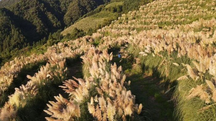 据悉,蒲苇的花期可持续到10月中旬。这个国庆假期不妨去布尼梯田景区,与常见的梯田秋景相比,这里的景致别具一格。