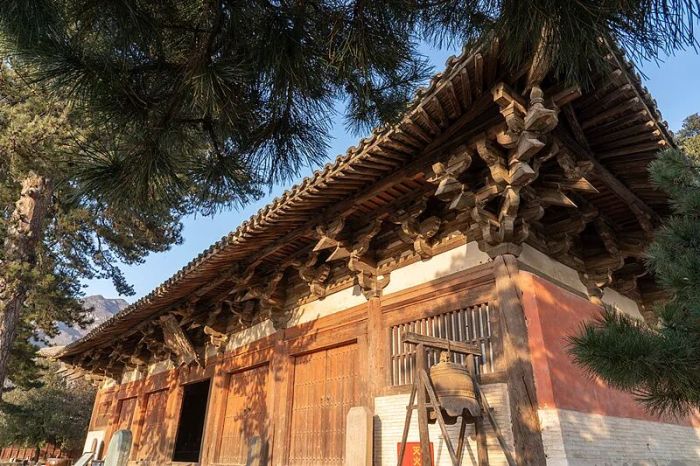 而寺中的东大殿更是国宝级存在——作为中国现存最早的唐代木构建筑之一,殿内的斗拱不用一钉一铆,却能撑起庞大的屋顶,殿外造型古朴,殿内还留存着唐代的彩塑与壁画,佛像神态庄严,色彩虽历经千年仍依稀可见。