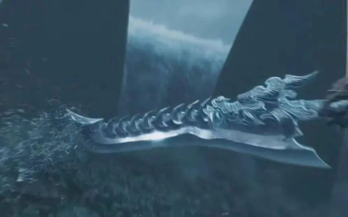 电影中,敖丙的父亲——东海龙王敖光肩负着守护大海的重任,他的武器“龙牙刀”一出场就威力十足。