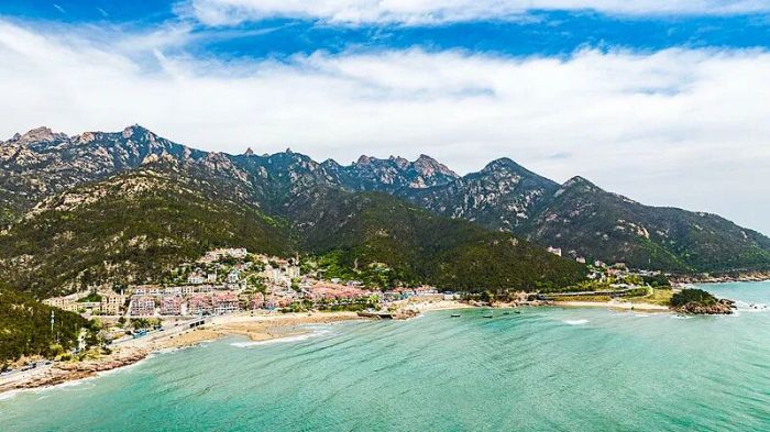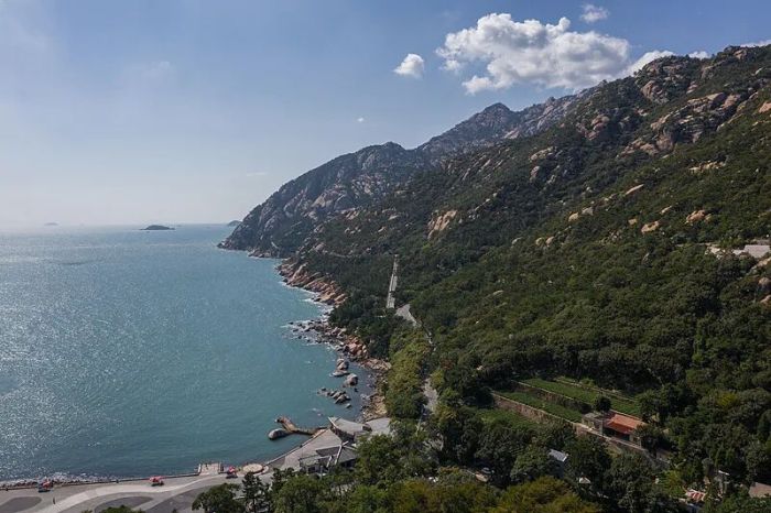 除了人文景观,崂山自然风貌也同样值得打卡游玩。沿着崂山太清宫游览线登山,一侧是苍翠山林,一侧是蔚蓝大海,山海相连的壮阔尽收眼底。