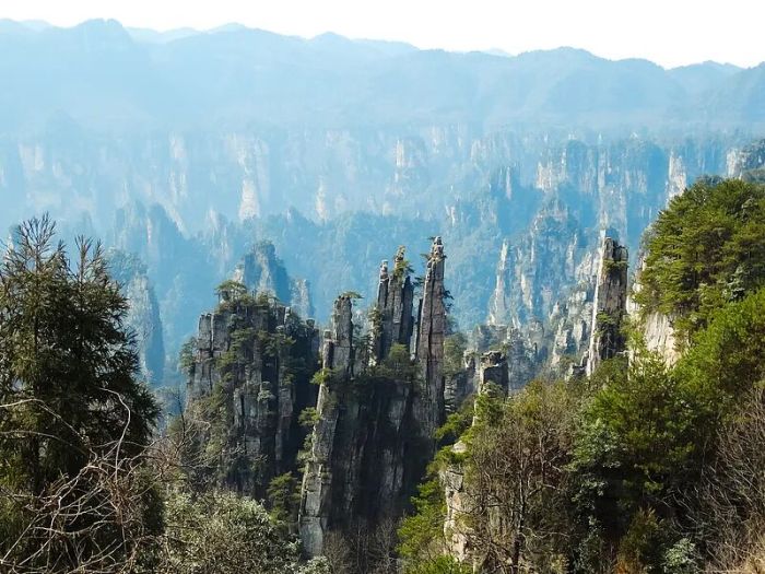 除了杭州的柔情,电影里的奇幻秘境场景,灵感来自湖南张家界。这片被联合国教科文组织认定为“世界自然遗产”的土地,用三千奇峰、八百秀水,为动画团队提供了最灵动的创作素材。
