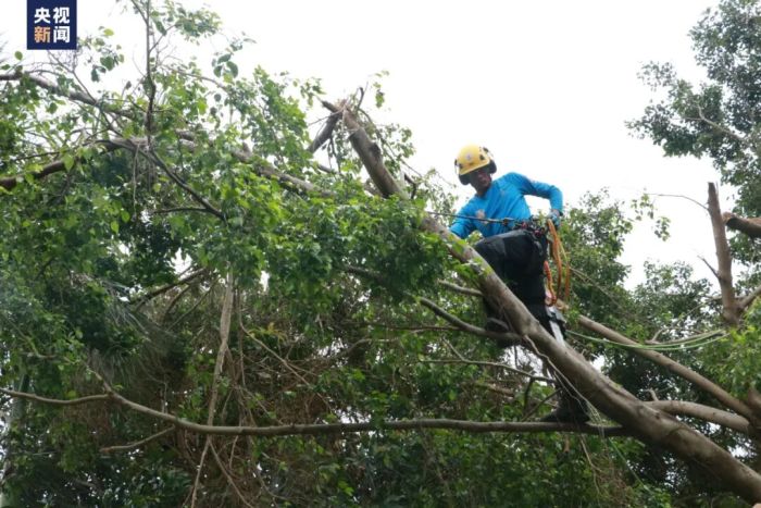 台风来临前,攀树师会提前评估高大树木的状况,适当修剪枝条,防止树木倒伏,保障居民安全。