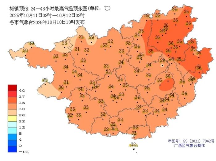 根据广西气象部门检测,10月9日8点至今天(10日)8点,桂林的全州、阳朔、平乐、灌阳、恭城等地位列广西各站最高气温排行榜前列。