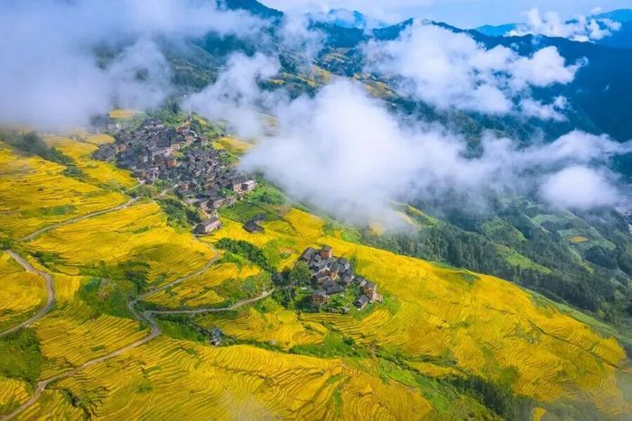 十月丰收季龙脊梯田迎来了动人秋色青山绿水中这片温暖的稻香