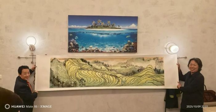 在“世界粮食日”全球盛典暨联合国粮食及农业组织(以下简称“联合国粮农组织”)成立八十周年的重要时刻,应联合国粮农组织邀请,以“粮安天下·墨绘农耕”为主题的丁杰梯田中国画作品展,作为联合国粮农组织举办的“从良种到美食”全球展的一部分(艺术特展),于10月10日与该全球展同步开幕。展览以艺术表达致敬人类农耕文明,聚焦全球粮食安全议题,首展受到联合国粮农组织总干事屈冬玉、莱索托国王等各国嘉宾赞许。
