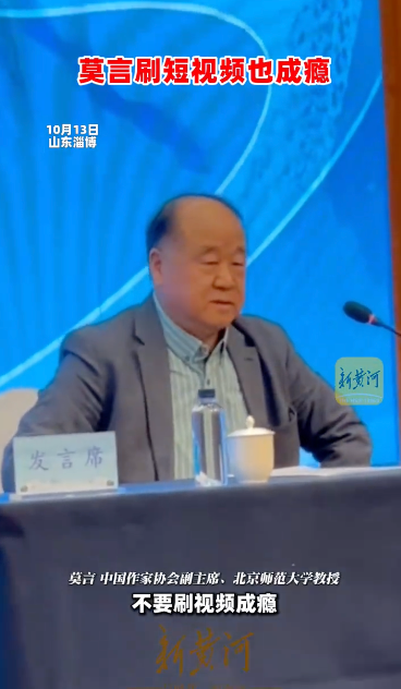 10月13日,作家莫言在山东淄博举行的一场座谈会上,提到自己刷短视频上瘾的经历
