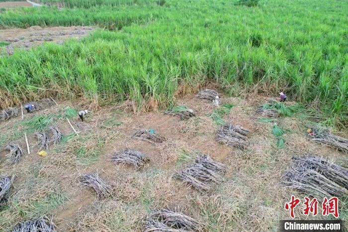 贵港市港北区大圩镇何村的甘蔗喜获丰收,村民抢抓农时砍运甘蔗。岑记华 摄