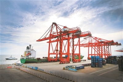 “十四五”时期,全国海关年均监管进出口货物52亿吨、货值达41.5万亿元,体量全球最大。图为北部湾广西钦州港货轮在装卸货物。