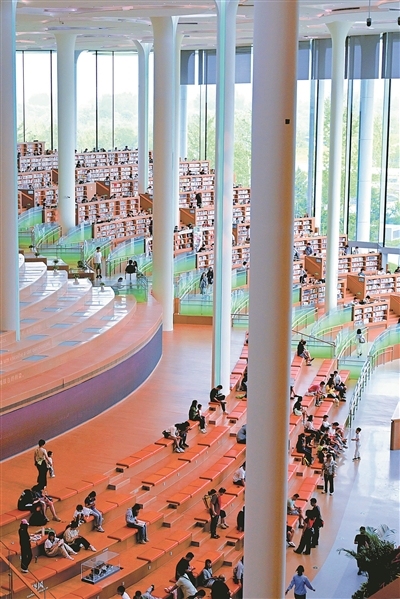 全国共有公共图书馆三千二百四十八个,群众文化机构近四点四万个,新型公共文化空间四万多个。群众享受文化服务有了更多的好去处,全国智慧图书馆体系、公共文化云建设成效显著。图为北京城市图书馆内读者在阅读。