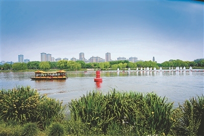 “十四五”时期,生态保护修复监管实现新进展。我国陆域生态保护红线面积占比超过30%,90%的陆地生态系统类型和74%的国家重点野生动植物种群得到有效保护。图为颐和园加强生态保护和景观提升,团城湖水源地呈现一片生机勃勃。