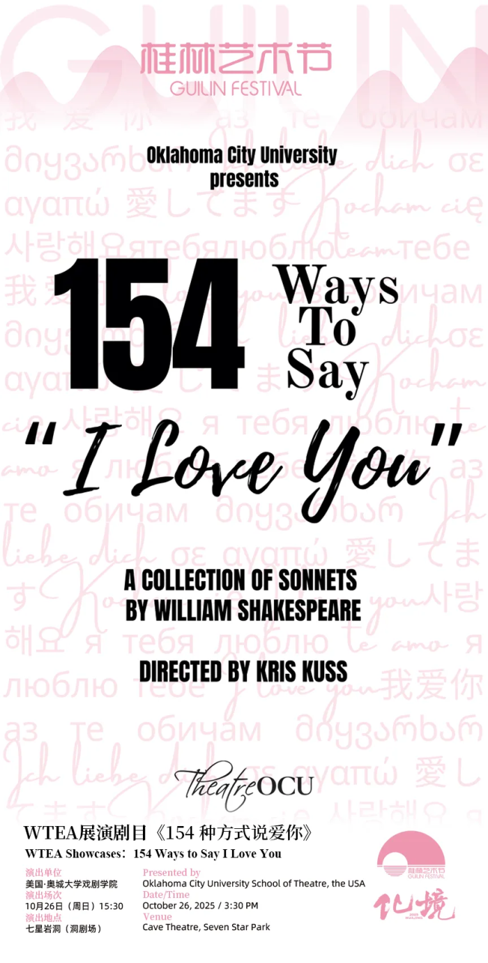 世界戏剧教育联盟(WTEA)戏剧邀请展每两年举办一次,本次展演将以“梦”与“恋”为主题,以天为幕、以山为景、以洞为台,“化境”上演东方哲恋篇、神话传说篇、奇幻梦境篇、现代传绎篇4个单元的剧目,邀请各成员院校参与创作演绎。届时,来自中国、保加利亚、格鲁吉亚、希腊、德国、俄罗斯、美国和英国的师生齐聚桂林,为观众带来国内外风格各异而又精彩纷呈的艺术舞台。