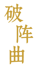 中国古代哲学家用金、木、水、火、土,来说明世间万物的形成与相互关系。在《破阵曲》中,这五个元素则代表五位主演的形象特质,五番遭遇纠葛。他们是抗战文化城中最具鲜艳的原色,亦构成桂剧改革中音乐、妆容、剧本、表演、精神的五个要素,这是属于五个男人的一台大戏。