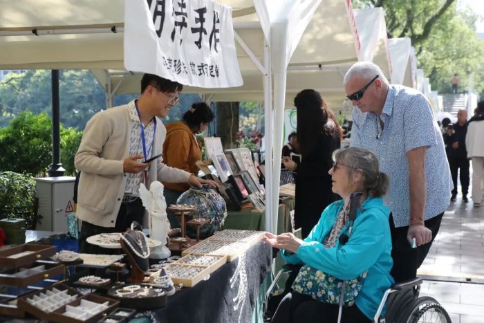 市民游客在集市中解锁“山水+艺术”的新型城市生活方式。 记者陈静 摄