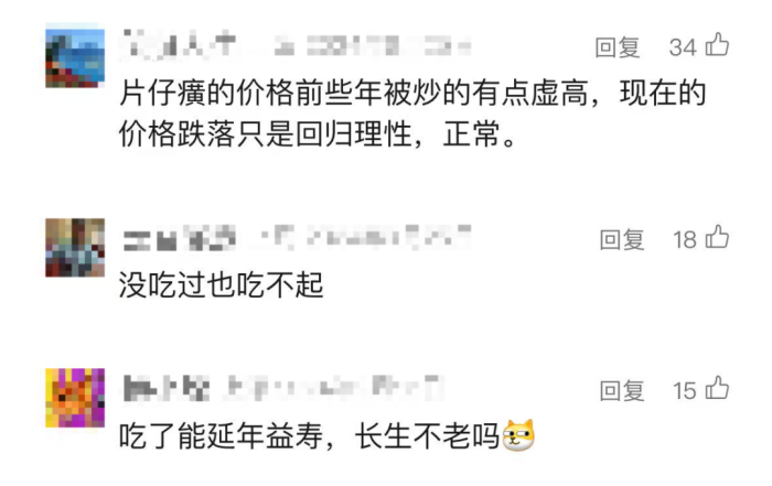 据海报新闻报道,10月23日,记者在济南某药店了解到,目前片仔癀锭剂的销量并不乐观,价格也出现下跌,“去年还能卖800多元一粒(3g),去年底到今年初能卖到原价760元一粒,现在还能在原价上给你打个折扣。”某连锁药店的店长表示,由于价格偏高,今年片仔癀锭剂的销量降低,“一个月可能也卖不了几粒。”