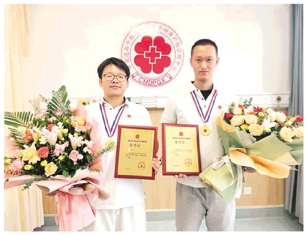 小莫和小唐收到荣誉证书。(桂林市红十字会供图)