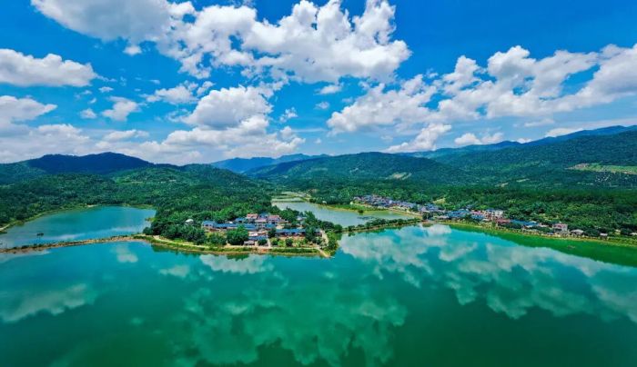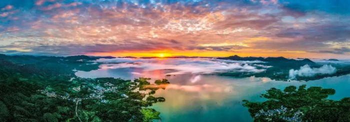 带着父母沿湖漫步,呼吸着清新的负氧离子,感受大自然的静谧与治愈;或是乘船游湖,穿梭于湖中小岛之间,享受难得的慢时光。若恰逢晴天,夕阳的余晖洒在湖面上,波光粼粼,似撒下千万颗碎金,绝美画面让人驻足忘返。