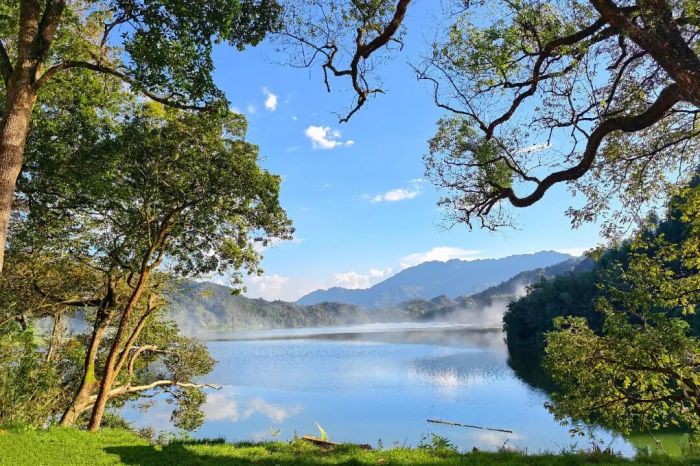 “秋水共长天一色”,用这句诗来形容重阳时节的青狮潭再恰当不过。青狮潭风景名胜区由东湖、西湖和公平湖组成,总面积170平方公里,湖水面积约30平方公里,湖水容量6亿立方米,被誉为“华南第一湖”,集大海的气势和平湖的妩媚于一体。它如一颗碧绿的宝石镶嵌在灵川大地,秋日的湖面平静如镜,倒映着蓝天白云与岸边的斑斓树影,微风拂过,泛起层层涟漪。