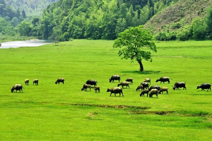 想要体验浓郁的民族风情与原生态秋景,兰田瑶族乡绝对是藏在灵川的“世外桃源”。这里梯田如画、瀑布成群,枫红竹翠交织成绚烂秋景,独特的地理位置也孕育出诸多奇景:一马平川的草原上,牛群结伴食草戏水,人们在此搭帐篷野餐、钓鱼烧烤,怡然自得。
