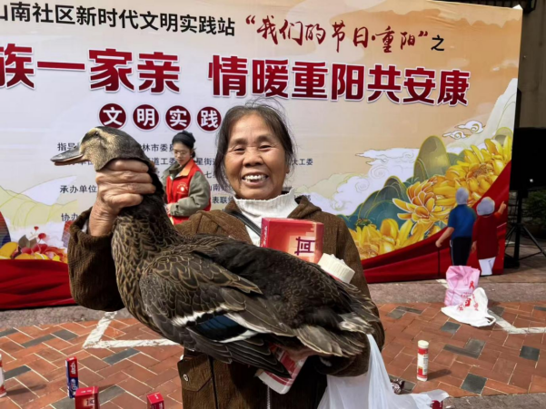 秋意深浓,菊灿重阳。为弘扬中华民族敬老、爱老、助老的传统美德,促进社区邻里和谐与民族团结,营造欢乐祥和的节日氛围,在共青团桂林市委员会的指导下,中共七星街道工委、七星街道办事处、七星街道人大工委、七星区退役军人事务局、七星区民政局、穿山南社区联合举办“中华民族一家亲 情暖重阳共安康”文明实践活动。