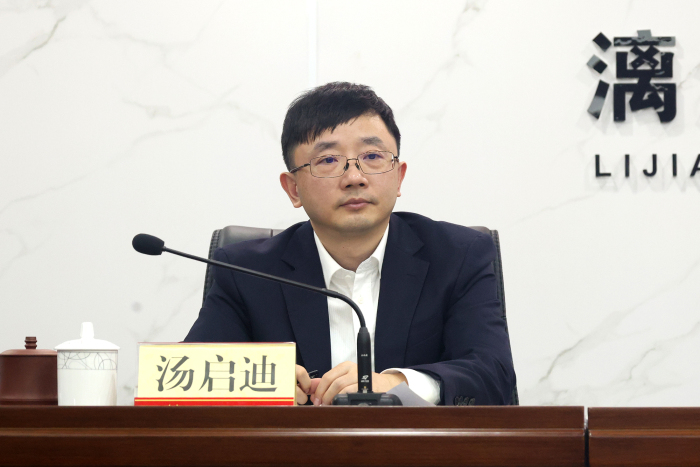漓江农合行党委委员、副行长汤启迪作业务经营分析通报并主持会议
