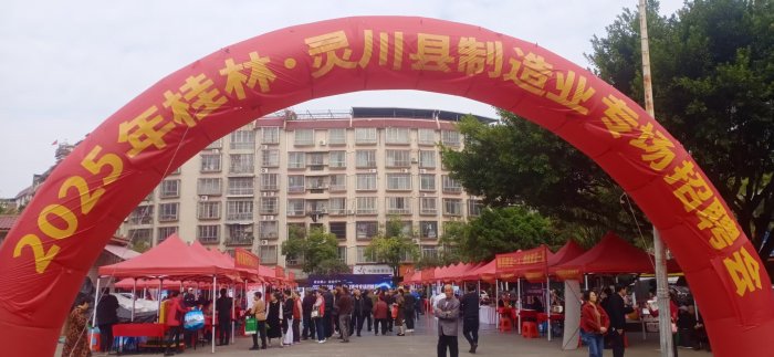为保障制造业企业用工需求,助力实体经济高质量发展,10月29日,2025年桂林·灵川县制造业专场招聘会在灵川县八里街永宁广场成功举办。桂林深科技有限公司、广西桂康新材料有限公司等41家制造业企业为重点就业群体提供1800余个岗位。