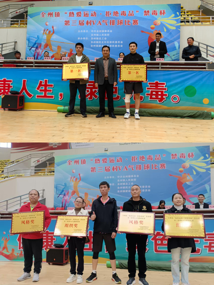 10月24日至26日,全州镇“热爱运动·拒绝毒品”禁毒杯暨第三届村“VA”气排球比赛在新区体育馆成功举办。全镇300余名干部职工组成多支队伍参赛,以运动激情传递禁毒理念,展现了昂扬向上的精神风貌。