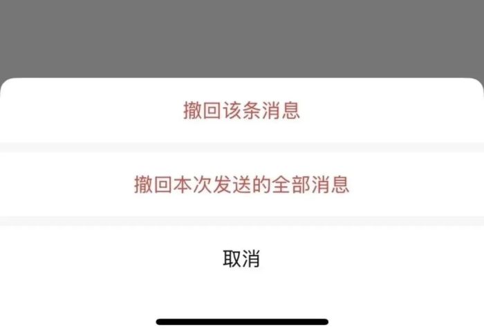 现在,微信可以一次性撤回本次发送的全部消息(包括多选转发、批量发送的图片视频和文件)。以前,一条条撤回,匆匆忙忙连滚带爬;现在,一次性撤回,从从容容游刃有余。