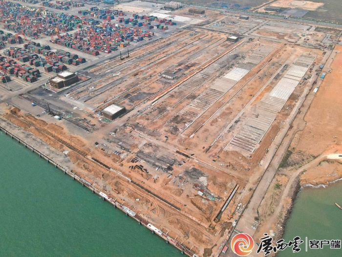 2021年4月,建设中的钦州自动化集装箱码头一期工程。(北部湾港集团供图)