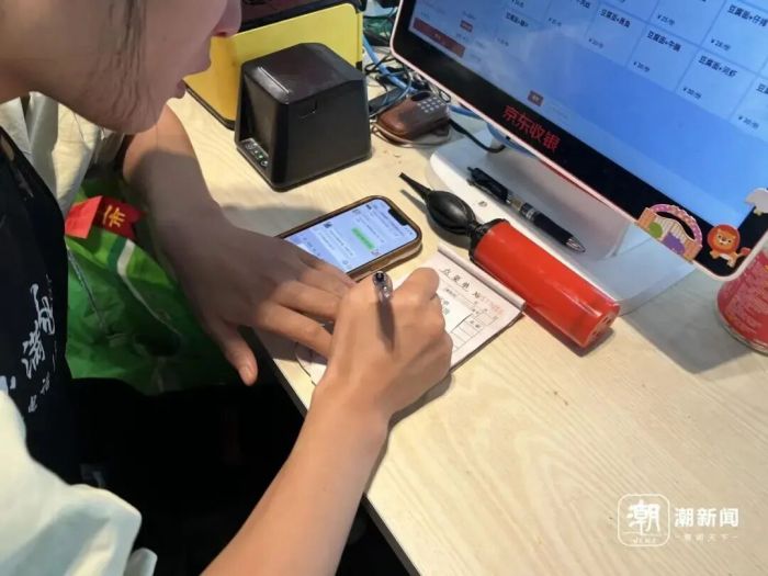 中午时分,陈金雁处理着订单。谢春晖/摄