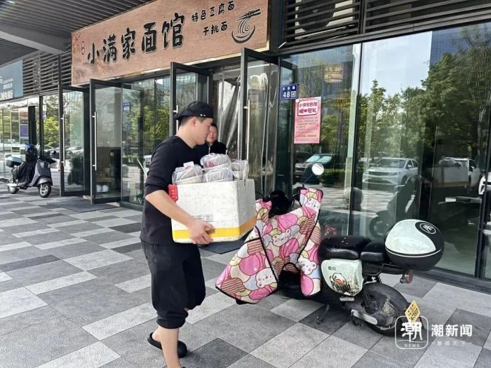 陈金雁的弟弟出发去医院送餐。谢春晖/摄