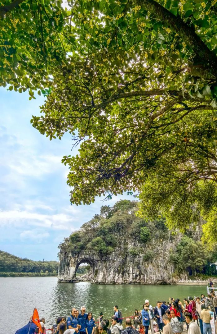 在象鼻山公园可享受江景与桂花香的“双重盛宴”。象鼻山公园紧邻漓江,园内的桂花树多分布在临江区域,形成“江风送花香”的独特体验。站在公园的观景平台上,既能欣赏象鼻山,又能感受漓江的碧波荡漾,还能闻到随风而来的桂花香。