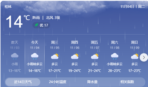 据桂林市花木研究所高级工程师孙颖介绍,今年桂花花期推迟至10月底,是近8年来最晚的一次。主要受天气条件影响,上半年降水偏多,导致桂花树养分积累不足。入秋后气温波动较大,前期温度偏高,未达到桂花开花所需的“昼夜温差10℃左右”的条件,直到前几日秋雨过后,气温回落、湿度适宜,才触发了桂花盛开。