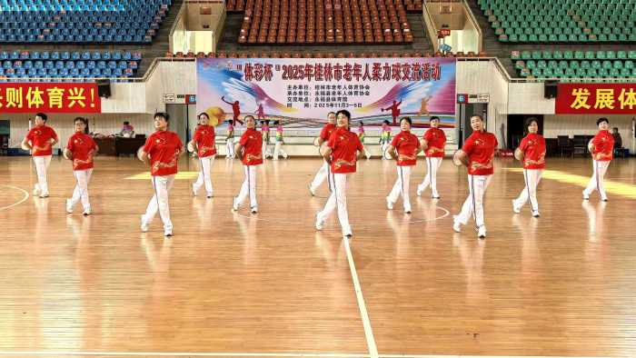 交流活动由桂林市老年人体育协会主办、永福县老年人体育协会承办,来自市辖县市区的18支队伍、211人参加角逐。比赛分普通组、难度组、展示组,增加了由市老年体协柔力球部与福建老体协柔力球专委会合作创编的柔力球套路“月亮里的阿妹”两个队参加展示。其中,普通组5个队、难度组11个队、展示组2个队。