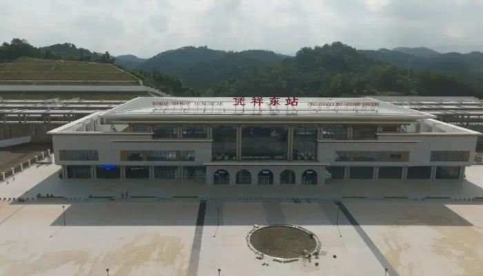宁明东站站房总建筑面积4781.85平方米,最高聚集人数400人,车场规模为2台4线。站房外立面设计借鉴宁明迁善书院古典风格,将两侧空间设计成书堆造型,既展现岭南建筑特色,又传承地域文化。