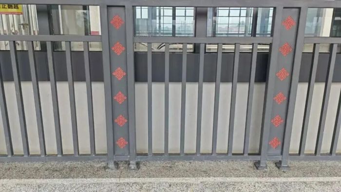 候车大厅顶部装饰为凭祥市花木棉花造型的图案,站内最高峰的时候能容纳1100人同时候车。
