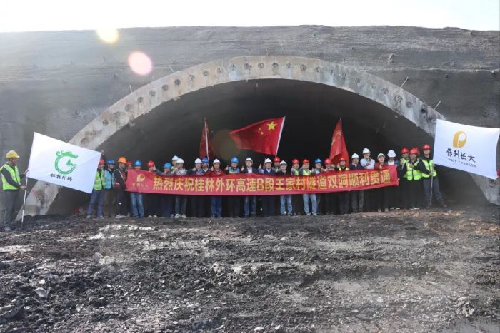 11月5日,桂林外环高速公路“最难隧道”——王家村隧道双洞顺利贯通,这标志着桂林外环高速隧道施工取得重大进展。