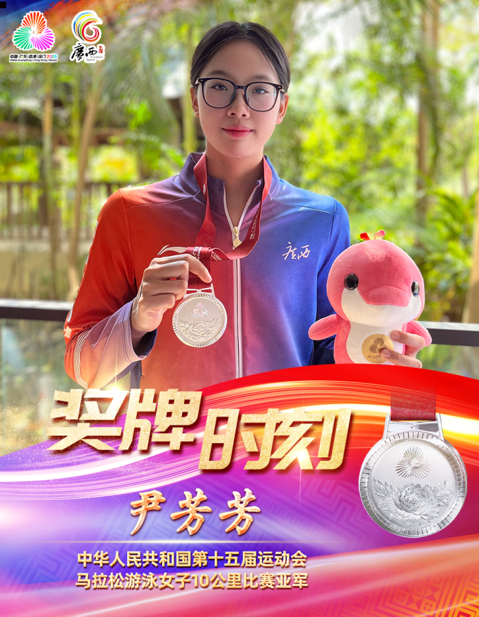 17岁桂林女孩尹芳芳,收获第十五届全运会女子10公里马拉松游泳决赛银牌