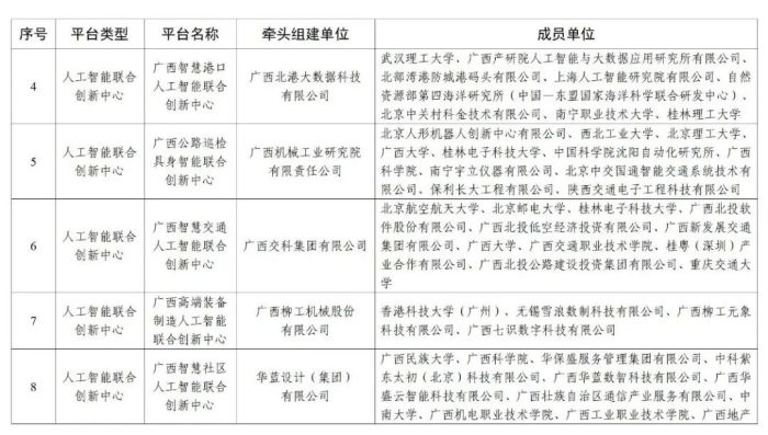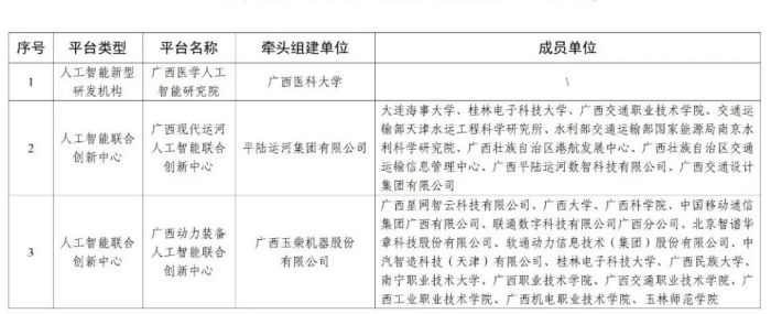 首批广西人工智能开放创新平台名单