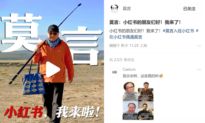 “小红书,我来了。”11月11日上午,著名作家莫言在小红书上发布首条视频。